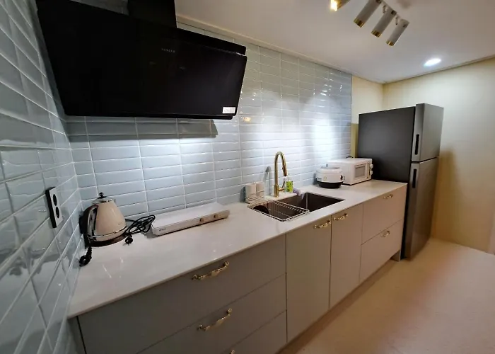 このヴィラには,食事の準備のための器具でいっぱいの台所が含まれています. ヴィラは遁村洞地下鉄駅から徒歩で10分以内で,Daesunjillihoeバス停から100メ-トル離れた場所にあります.